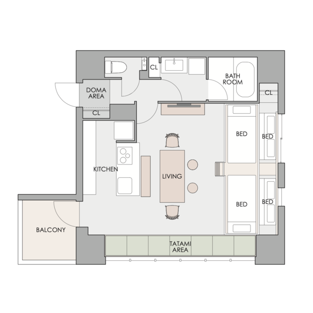 The hotel is fully equipped with refrigerators, washing machines with dryers, microwave ovens, cooking utensils, and other necessities for living, so you can live in the hotel without any inconvenience even for a long stay.